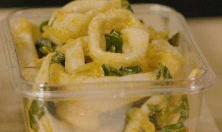 7. При подаче выкладываем форшмак на подпеченный хлеб, сверху натираем ледяное яблоко, украшаем измельчённым шнитт-луком и чёрным перцем.