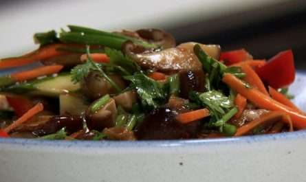 10. Перекладываем блюдо в тарелку, посыпаем измельчёнными зеленым луком и кинзой.