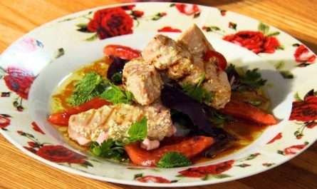 9. Посыпьте салат кедровыми орешками.