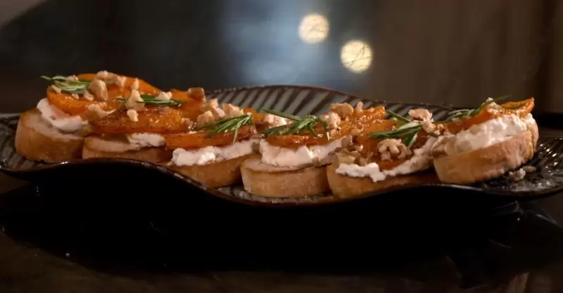 5. Украсьте брускетты розмарином и грецкими орехами.