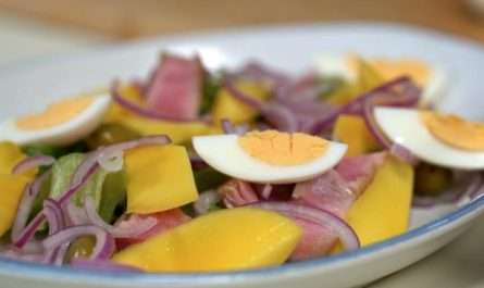 7. Заправьте салат оливковым маслом. Посолите и поперчите.