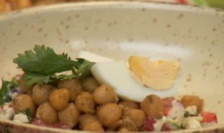 2. Обжарьте её с чесноком и сливочным маслом. Добавьте муку, мускатный орех, шпинат и сливки. Протушите ингредиенты вместе пару минут.