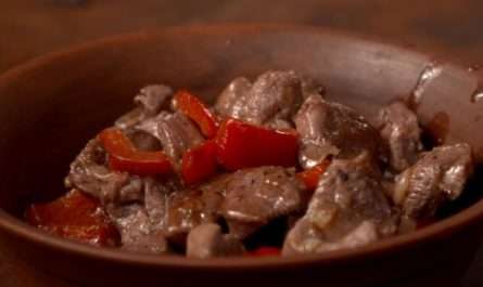 9. Достать перец из контейнера и убрать кожу. Нарезать.
