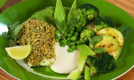 3. В контейнер выложите греческий йогурт. Посыпьте его нарезанным базиликом.