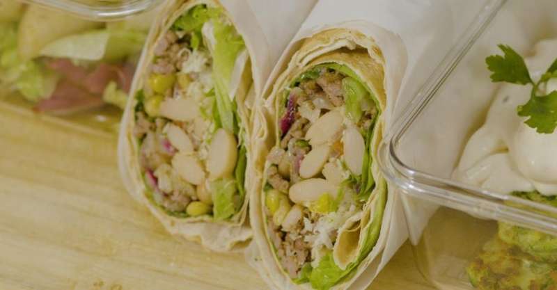 4. На лаваш выложите листовой салат, а на салат – начинку с фаршем.