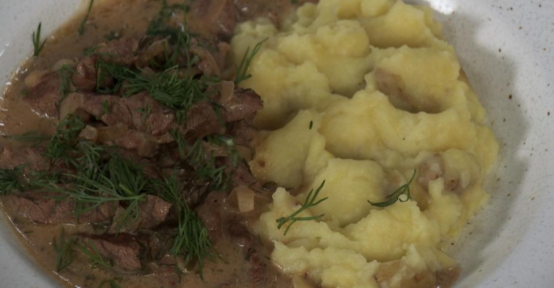 • Версия бефстроганов в сливочно-горчичном соусе и картофельным пюре