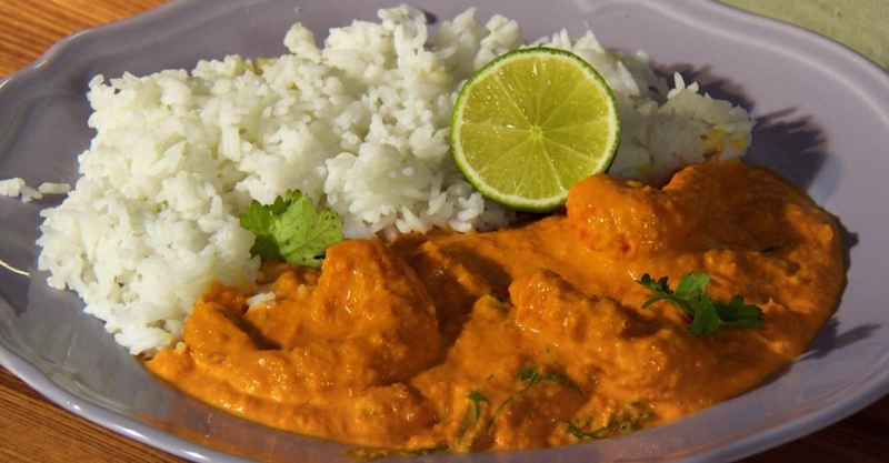 рис отварной  — 80 г Выпуск «Малайзия. Карри с морепродуктами и кебаб малай» Программа «Готовим с мечтой»